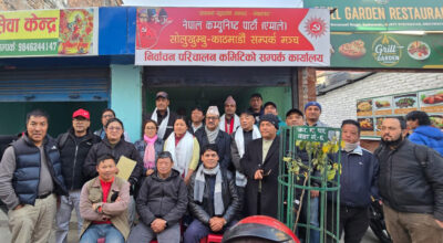 नेकपा एमाले सोलुखुम्बु–काठमाडौँ सम्पर्क मञ्चले फागुन २१ गते हुने प्रतिनिधि सभा निर्वाचनलाई लक्षित गर्दै निर्वाचन परिचालन कमिटी गठन गरेको छ।सम्पर्क मञ्चका अध्यक्ष खड्गनारायण राईको अध्यक्षतामा सम्पन्न बैठकले नेकपा एमाले सोलुखुम्बुका प्रतिनिधि सभा उम्मेद्वार कल्पना राईलाई