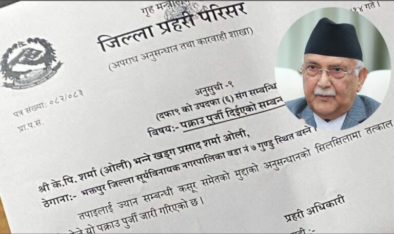 काठमाडौं । जेन–जी आन्दोलनमा दमन गरेको आरोपमा पक्राउ परेका पूर्वप्रधानमन्त्री केपी शर्मा ओली र पूर्वगृहमन्त्री रमेश लेखक लाई प्रहरी गणमा राखिने भएको छ। जिल्ला प्रहरी परिसर काठमाडौंका अनुसार उनीहरूलाई महाराजगञ्जस्थित २ नम्बर प्रहरी गणमा थुनामा