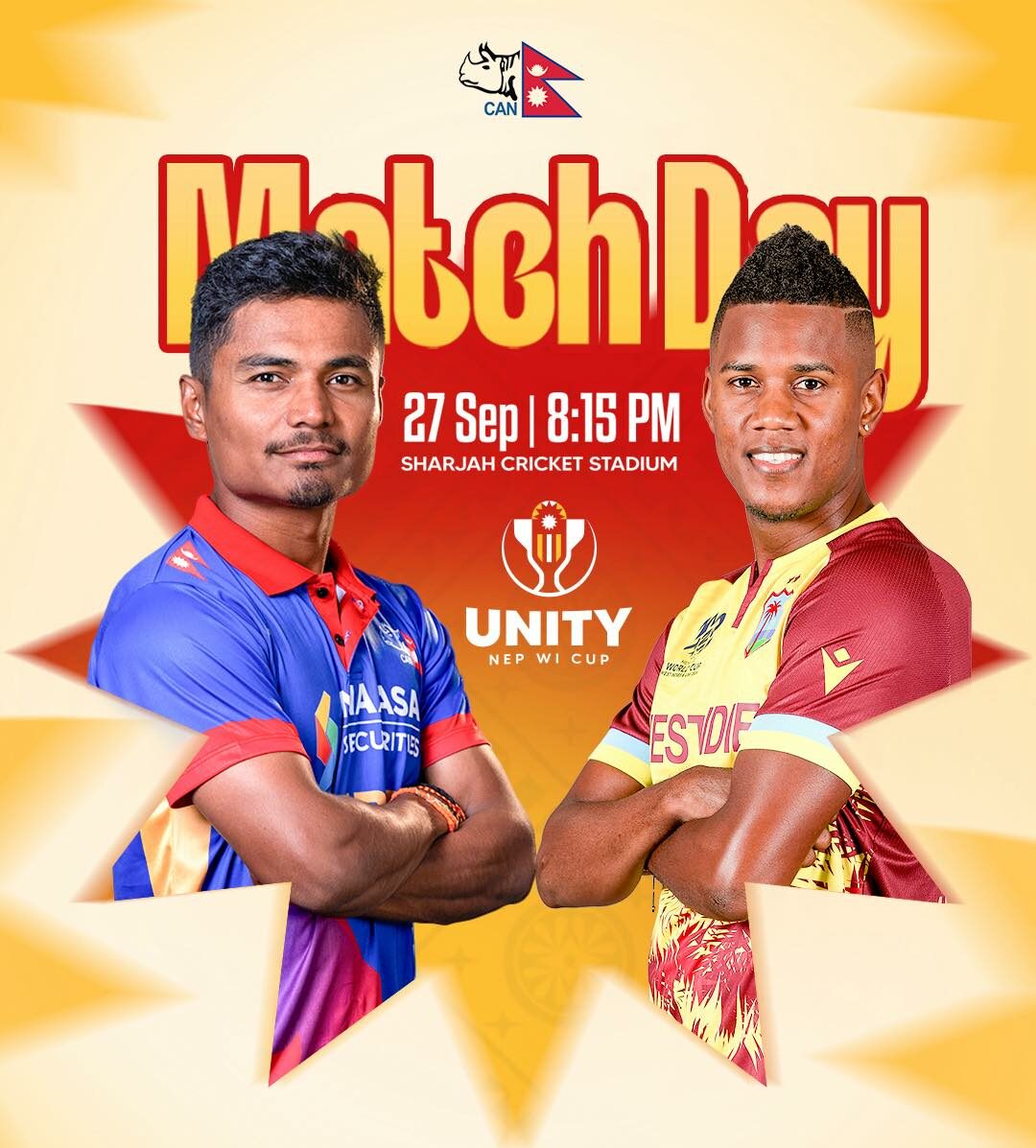 नेपालले पहिलोपटक दुई पटकको टी–२० विश्वकप विजेता वेस्ट इन्डिजसँग अन्तर्राष्ट्रिय टी–२० खेल खेल्न लागेको हो। तीन खेलको शृङ्खलामा दोस्रो खेल असोज १३ गते र तेस्रो खेल १४ गते खेलाइने कार्यक्रम छ।