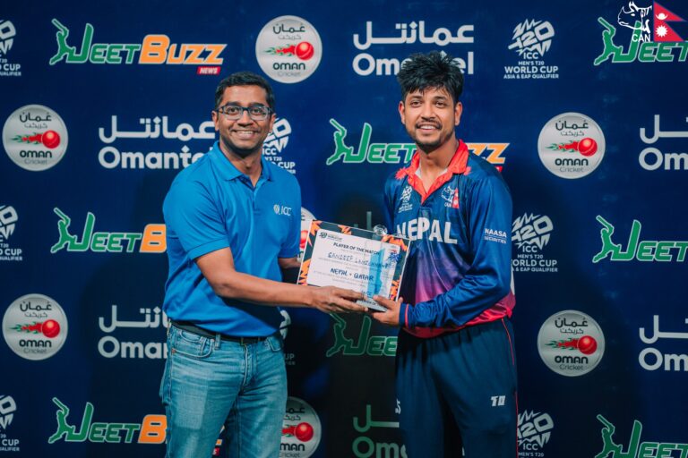 ओमनमा जारी आईसीसी टी–२० विश्वकप एसिया–इस्ट एसिया प्यासिफिक छनोटको सुपर सिक्स चरणमा नेपालले कतारमाथि रोमाञ्चक पाँच रनको जित निकालेको छ।