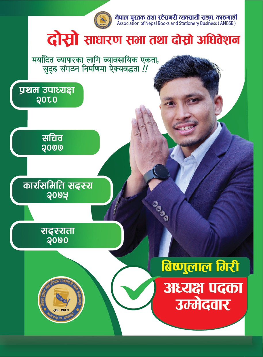 नेपाल पुस्तक तथा स्टेसनरी व्यवसायी महासंघ काठमाडौंको अध्यक्षमा विष्णु गिरीको दावी