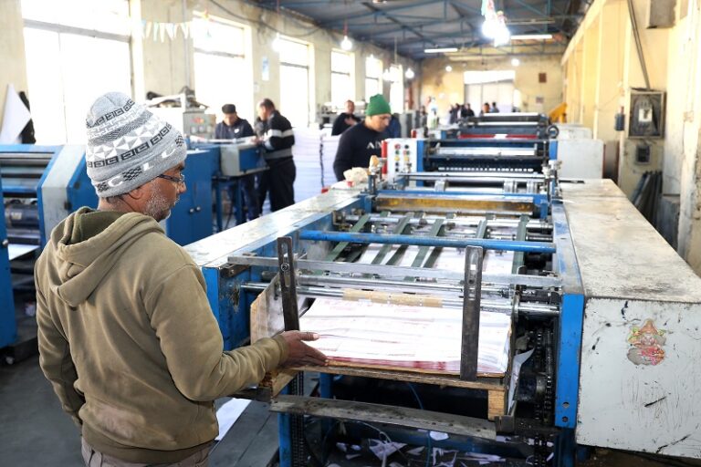 जनक शिक्षा सामग्री लिमिटेड भक्तपुरमा आगामी फागुन २१ गते हुने प्रतिनिधिसभा सदस्य निर्वाचनका लागि आवश्यक नमुना मतपत्र छाप्दै कर्मचारी ।