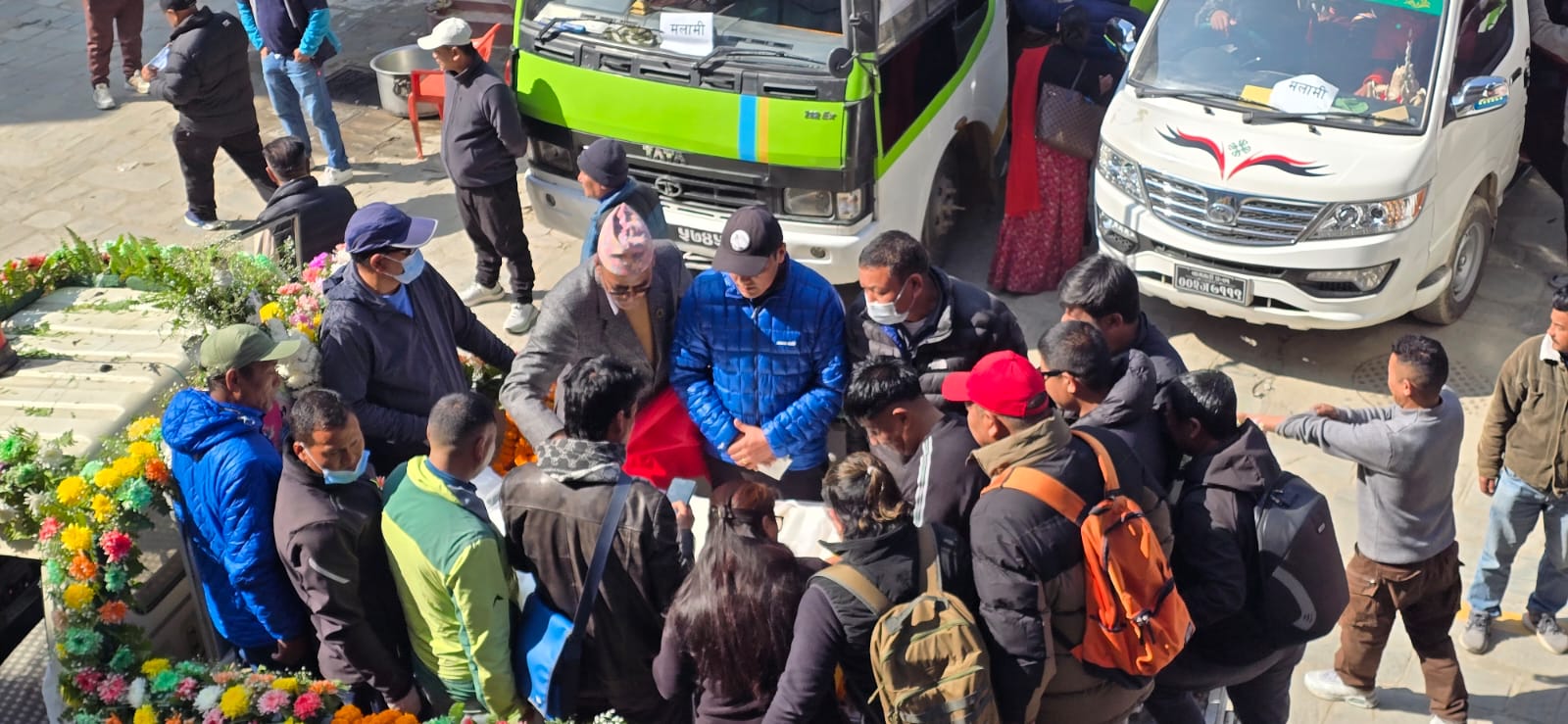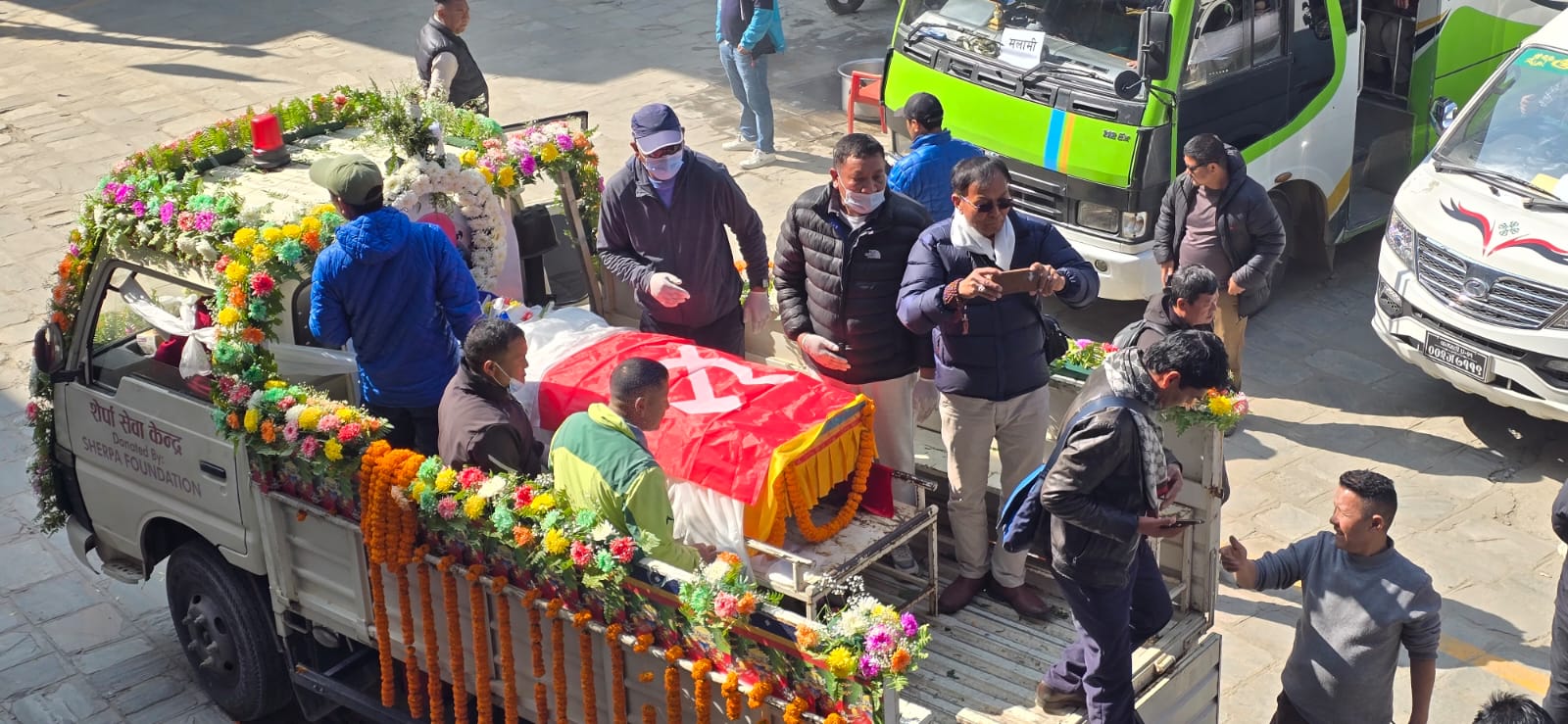 काठ्माण्डौ बौद्धस्थित शेर्पा सेवा केन्द्रमा राखिएको स्वर्गिय शेर्पाको पार्थिव शरिरलाई नेकपा एमालेका नेता एवं कोशी प्रदेशका सांसद बुद्धिकुमार राजभण्डारी, नेकपा एमाले कोशी प्रदेशका सचिवालय सदस्य महेश किराँती लगायतका नेताहरुले एमालेको झण्डा ओढाई अन्तिम बिदाई गरे ।