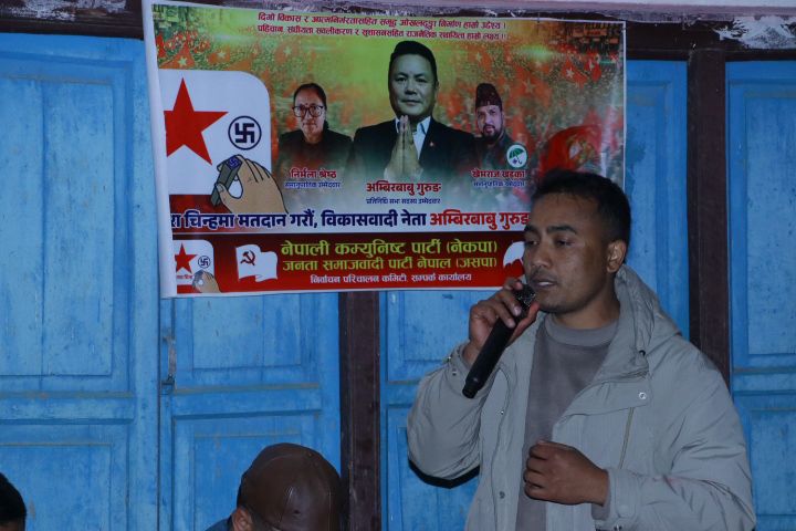 ‘ओखलढुंगामा विकास ल्याउने नेता कि बलबहादुर राई नै थिए, कि अम्बिरबाबु गुरुङ नै छन्’ मोलीमा आयोजित चुनावी सभामा जसपाका नेता दिपेन्द्र रुम्दालीले भने, ‘तपाई हाम्रो १ भोटले जन्मभूमीमा समृद्धि ल्याउने वाला छ । त्यसैले तारामा भोट हालेर अम्बिरबाबु गुरुङलाई विजयी गराऔं ।’ गुरुङले विगतमा गरेका काम र आगामी दिनका सम्भावना बुझेर विकास र समृद्धिको सर्तमा जसपाले कार्यगत एकता गरेर समर्थन जनाएको बताए ।