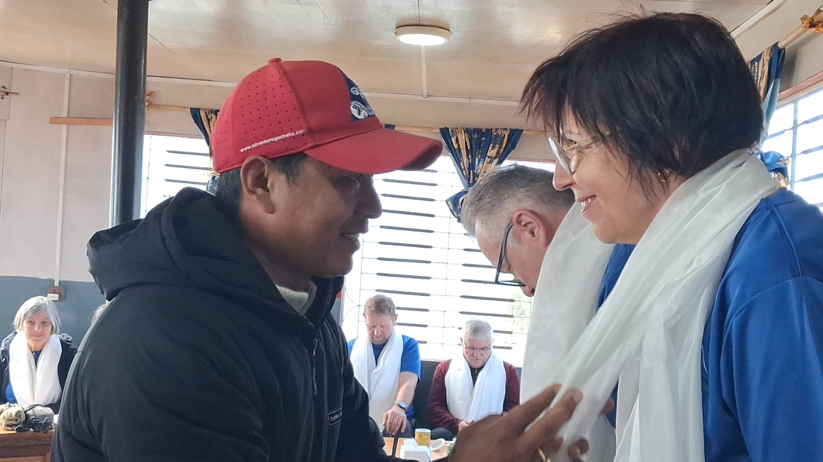 अल्पाइन एक्सकर्सन ट्रेक्स एण्ड एक्सपिडिसनको आयोजनामा सञ्चालित उक्त अभियानअन्तर्गत जर्मनीका नागरिक कारिना एडम र रोबर्ट न्युबरको नेतृत्वमा आएको टोलीलाई गाउँपालिका अध्यक्ष बुद्धिकिरण राईको उपस्थितीमा स्थानीयले विशेष सत्कार गरेका हुन् ।