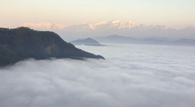 तनहुँको बन्दीपुर गाउँपालिका-५ स्थित पर्यटकीय गाउँ कोरीखाबाट देखिएको कुहिरो र पृष्ठभूमिमा माछापुच्छ्रे र अन्नपूर्ण हिमाललगायतका