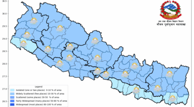 आज पनि मनसुन केही कमजोर हुने देखिएको छ । मनसुनको न्यून चापीय रेखा सरदर स्थानको