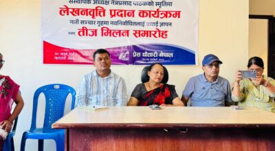 प्रेस चौतारी नेपाल झापाले तीन विषयमा लेखनवृत्ति घोषणा गरेको छ । आज संस्थापक अध्यक्ष नेत्र