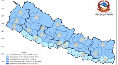 मनसुनको न्यून चापीय रेखा सरदर स्थानको दक्षिणतर्फ अवस्थित रहेको जनाउँदै मौसम पूर्वानुमान महाशाखाले देशमा मनसुन