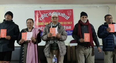 नेकपा (माओवादी)का महासचिव नेत्रविक्रम चन्द विप्लवले सबै कम्युनिस्ट पार्टीहरूका बीचमा मोर्चा र सहकार्यको लागि आफू तयार रहेको बताएका छन् । सिद्धान्त, कार्यदिशा, कार्यक्रम र उद्देश्य मिल्नेसँग एकताको लागि समेत तयार रहेको उनले उल्लेख गरेका छन् । बुधबार नेकपा संयोजक पुष्पकमल दाहाल प्रचण्डले एकतामा आउन आग्रह गरेकोप्रति लक्षित गर्दै उनले भने– 'चुनावी मोर्चामा समेत सहकार्य गर्न…